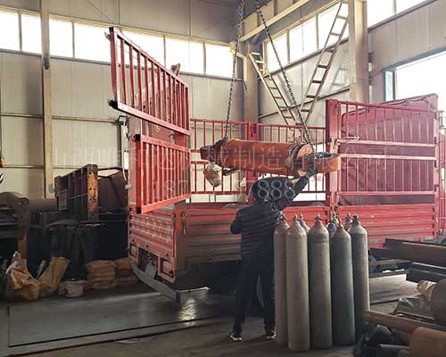 山西皮帶機配件廠家發(fā)貨現(xiàn)場:唯和達機械發(fā)往霍州的導向滑靴,油缸!